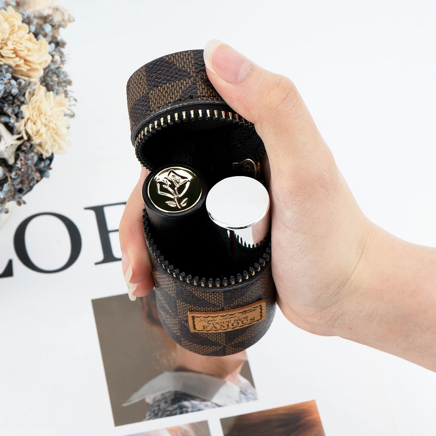 Leather lipstick case with keychain for easy carry, ideal for office, hiking, camping, business trip and travel, etc.