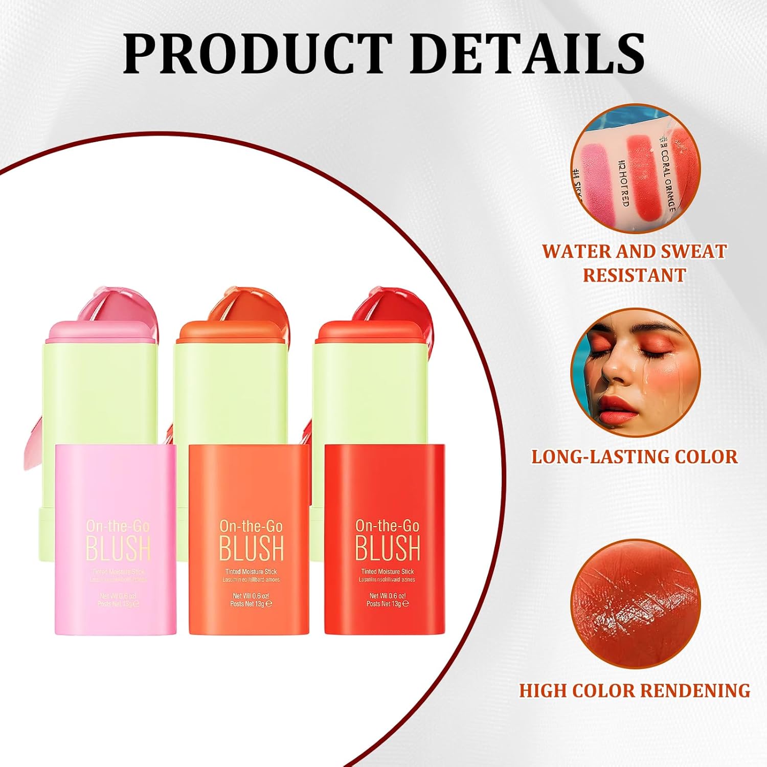 Travel-Friendly Design: The compact size and sleek packaging make these blush sticks a convenient addition to your makeup bag; Great for quick touch-ups during travel or throughout your day
