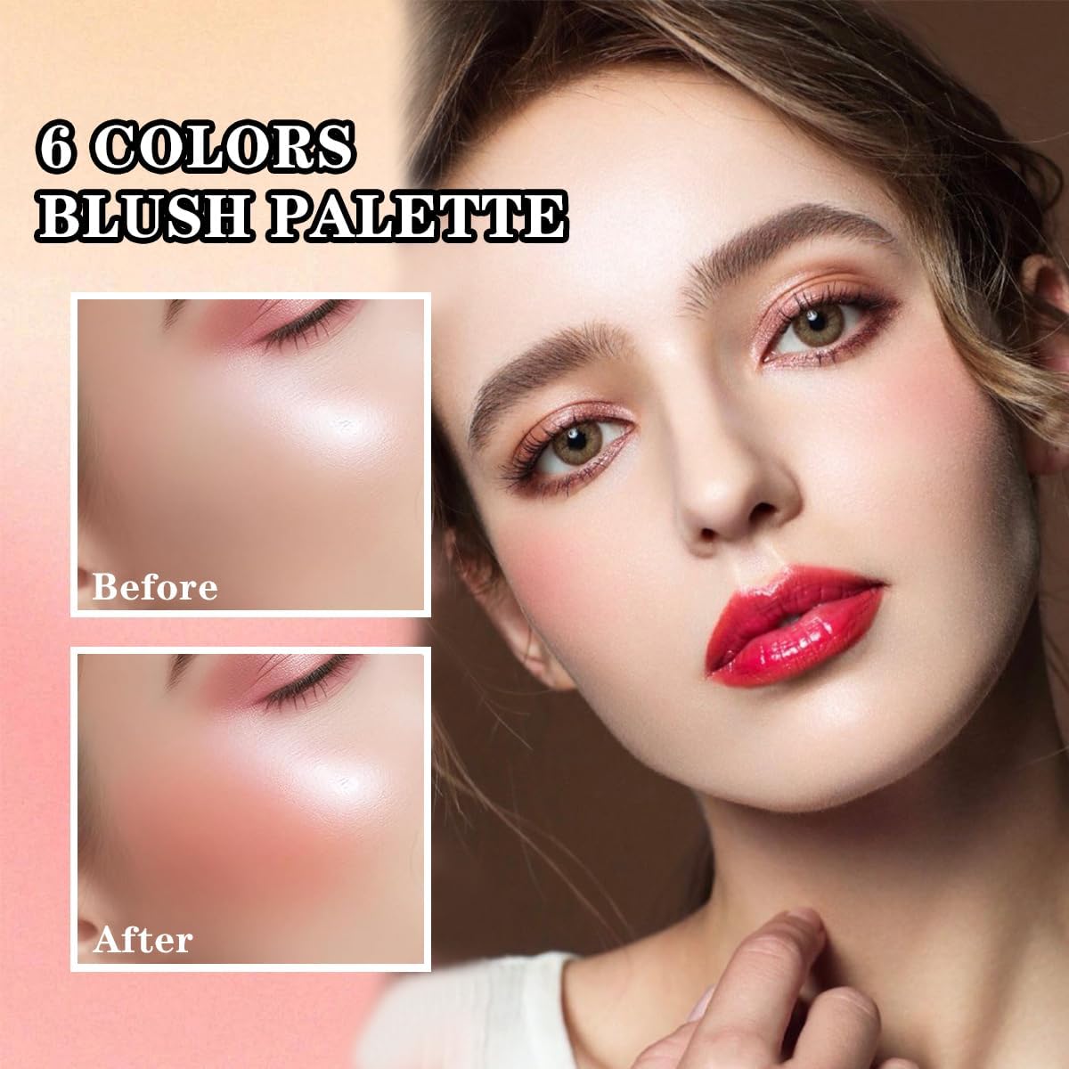 The 6 Colors Face Blush Palette – This 6 colors matte blush ideal for creating a warm glow and stunningly defined features for a beautiful look that lasts all day, include pink , peach anddeep rose deliver a healthy blush of color.