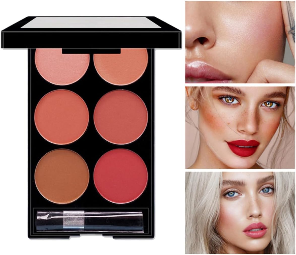【6 shades】: This blush palette contains 6 blush colours. The blush shades are nude, light pink, coral, peach, brown red, dark red. You can apply or blend multiple layers to create your own unique Rougeton