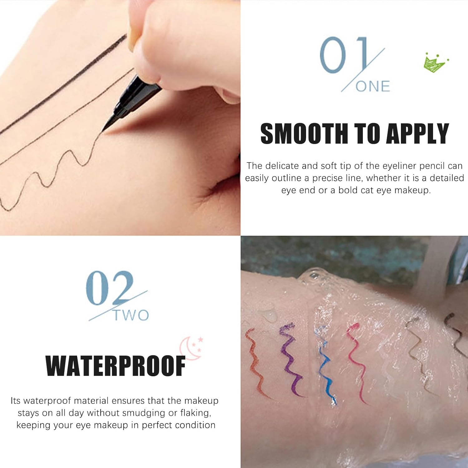 【EASY TO APPLY】 The delicate and soft tip of the eyeliner pencil can easily outline a precise line, whether it is a detailed eye end or a bold cat eye makeup. Even novices can get started quickly and create charming eyes, allowing you to show glamour anytime, anywhere.