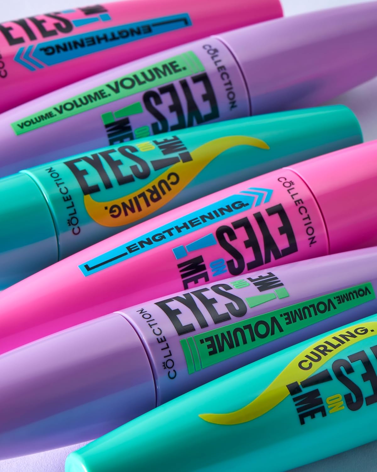 Collection’s eyes on Me! VOLUME VOLUME VOLUME Mascara helps you to achieve 3D volume in one simple application. The jumbo brush amplifies lashes, creating dramatic volume to stun on any night out. Choose from 3 different lash shades to suit your mood, or make up