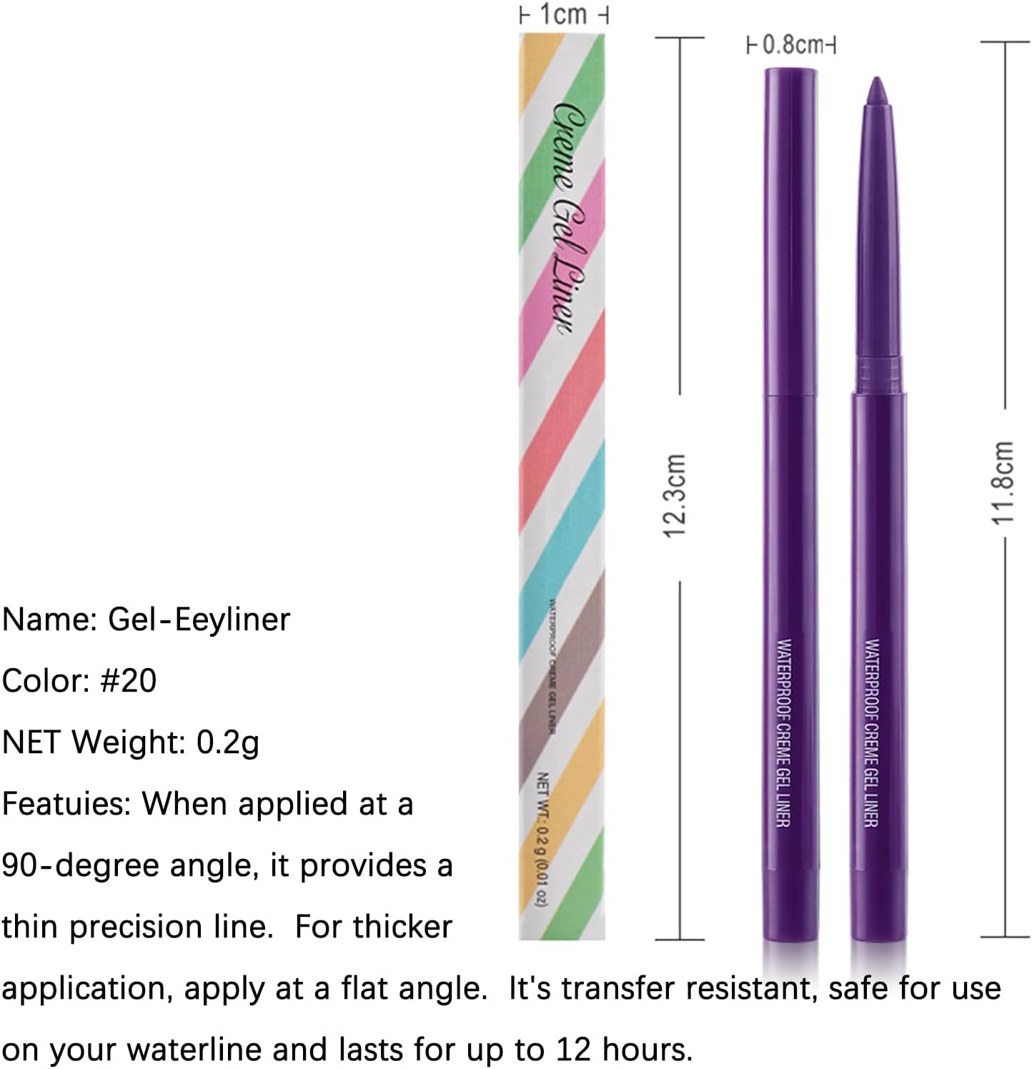 Purple Eyeliner: Quick drying , the tip of the eyeliner allows you to easily control the line to create the quick-drying formula ensures that it does not stain once applied