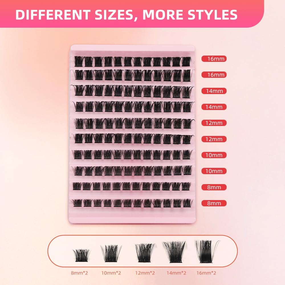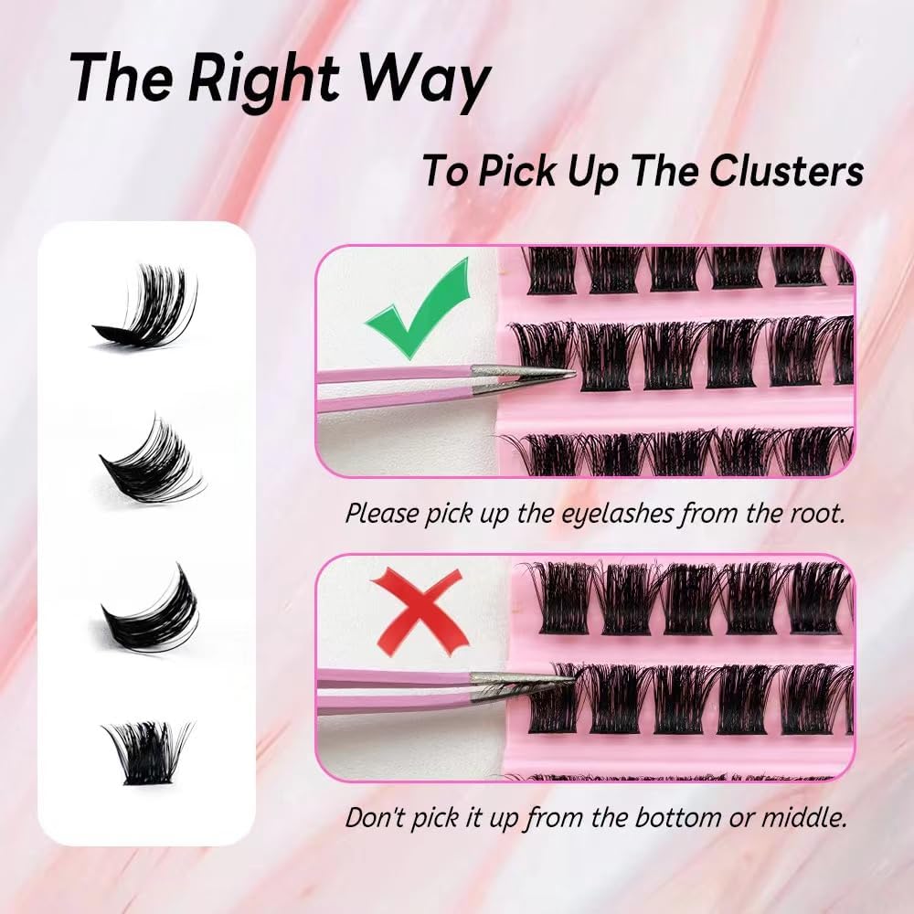 【Easy to Apply& Beginners Friendly】:8-16mm mixed lengths lash clusters give you the flexibility to create the style and eye shape that same effect as single lashes, but more affordable, easier to use, and won’t harm your natural lashes! Refreshing and delightful.
