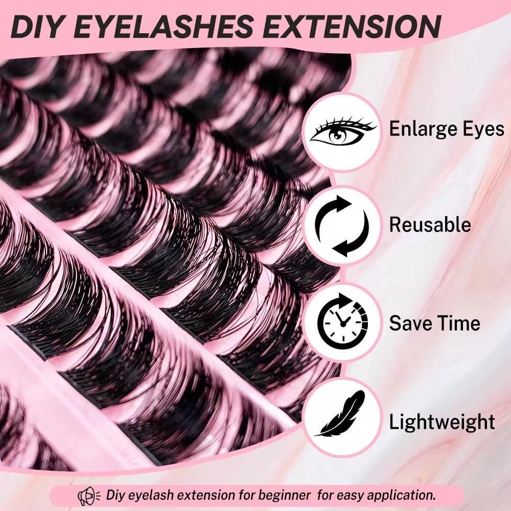 【DIY Cluster Lashes at Home】:120 clusters lashes in one tray.You can apply cluster lashes at home by yourself and replace expensive and waste time beauty salon and get same perfect eyelash extensions look!