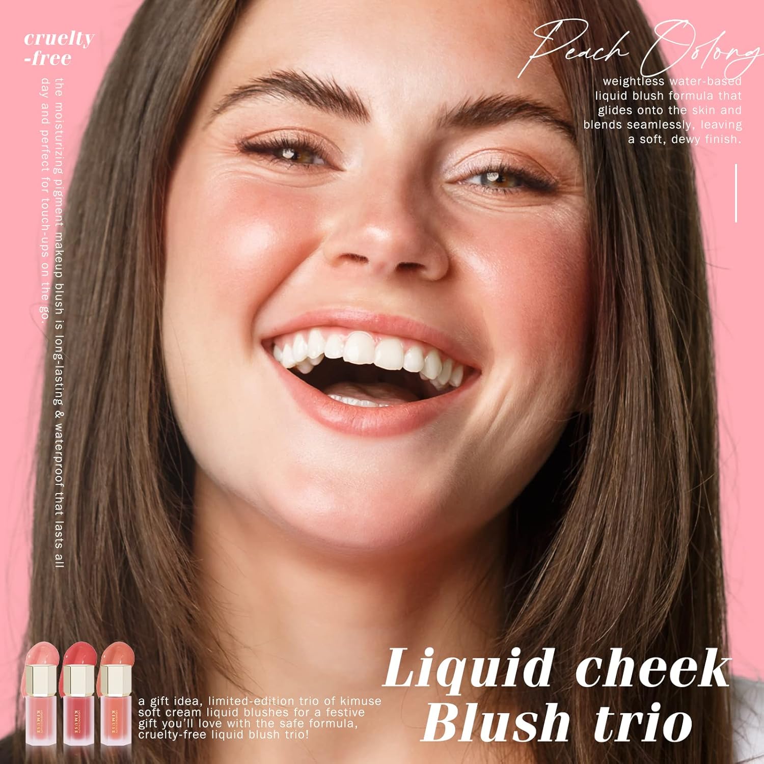 Great Gift Idea – A gift idea, limited-edition trio of KIMUSE Soft Cream Liquid Blushes for a festive gift you’ll love with the safe formula, cruelty-free liquid blush trio!