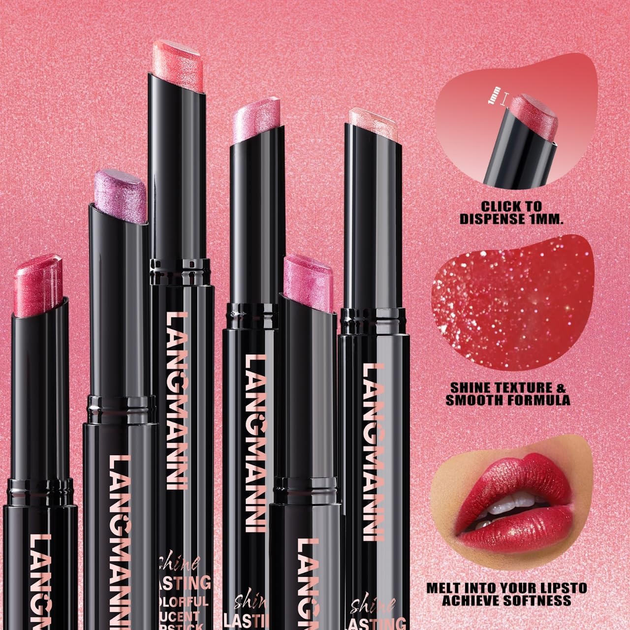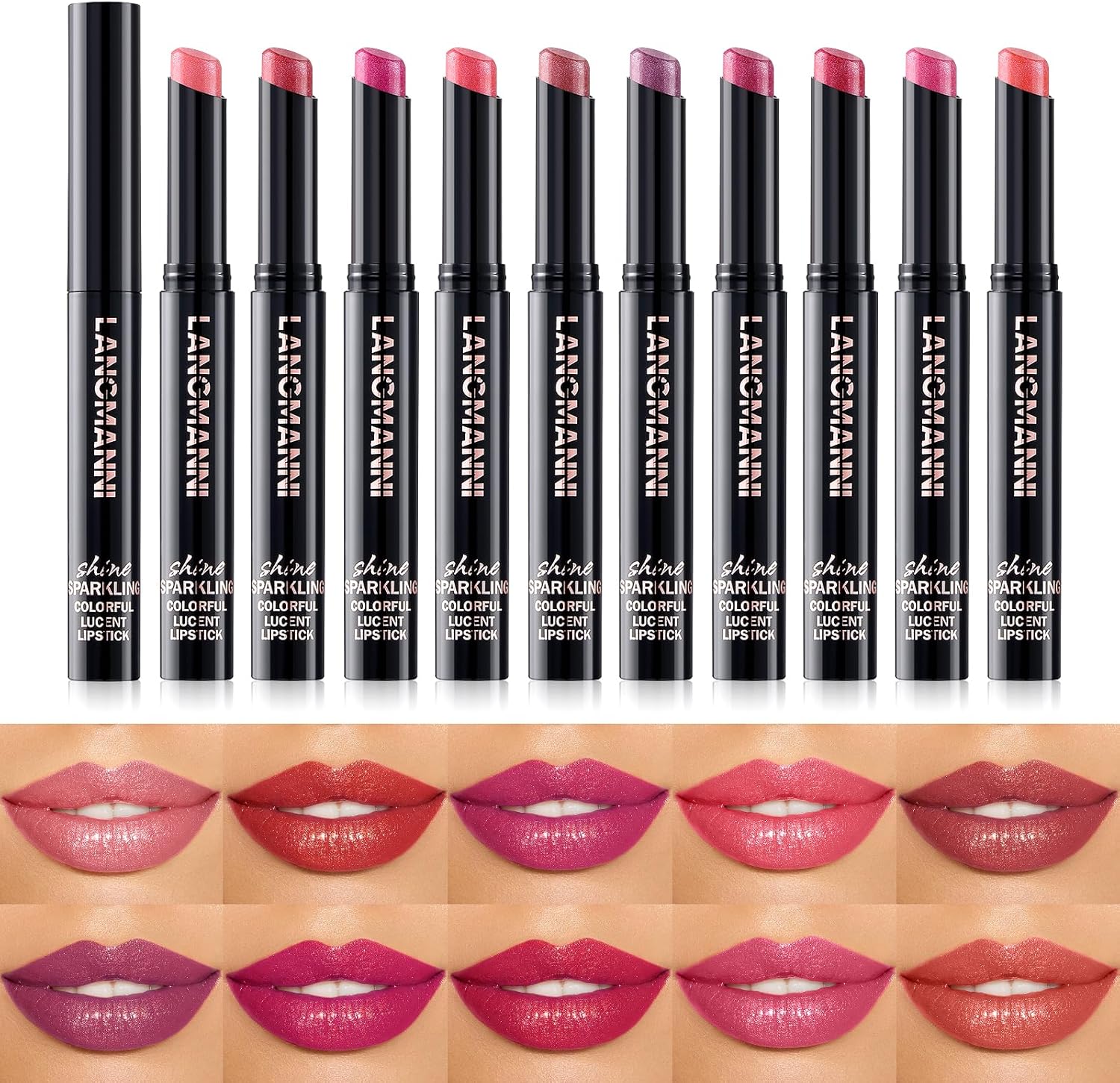 LANGMANNI 10 Colors Sparkling Lipstick Set With Angled Tip |…