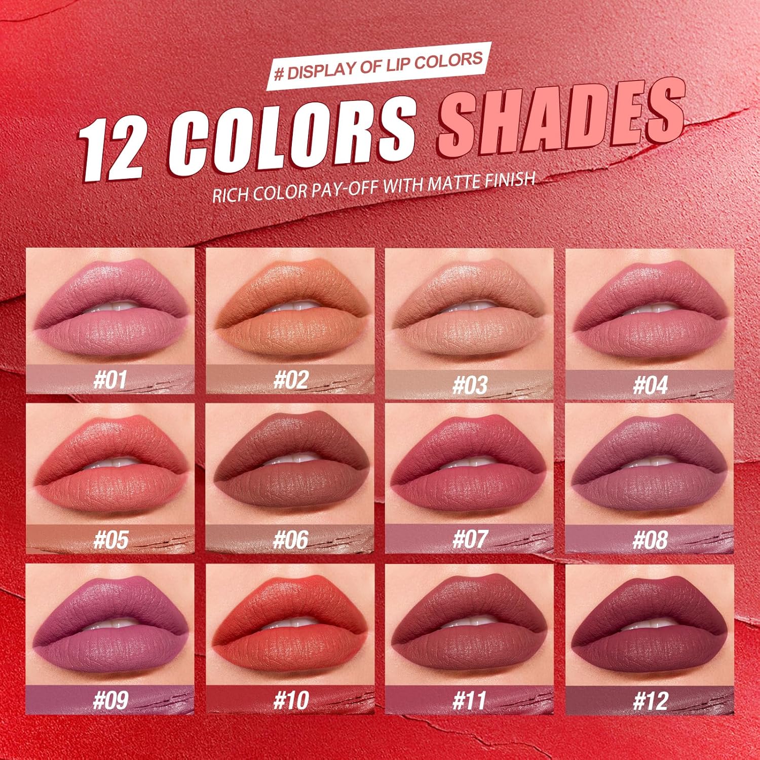Curated Pro Color Palette:Discover 12 universally flattering shades—from everyday nudes to bold berries and reds—expertly designed to complement all skin tones. Each high-pigment lipstick transitions seamlessly from office wear to evening glam, empowering versatile matte looks with a single collection.
