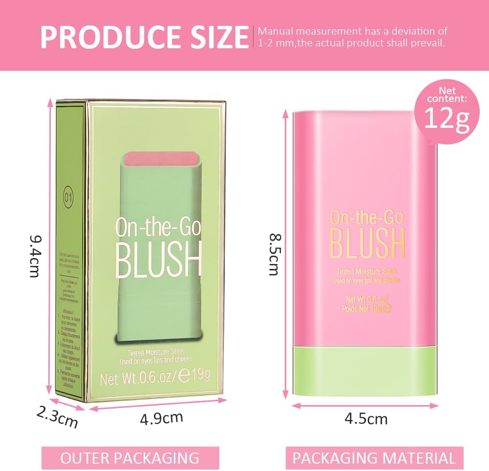 【EASY TO USE】It’s easy to use, just open the package, dot the blush stick on the desired area, and gently tap the skin with your fingertips to evenly tint it and make your face a natural smooth look.