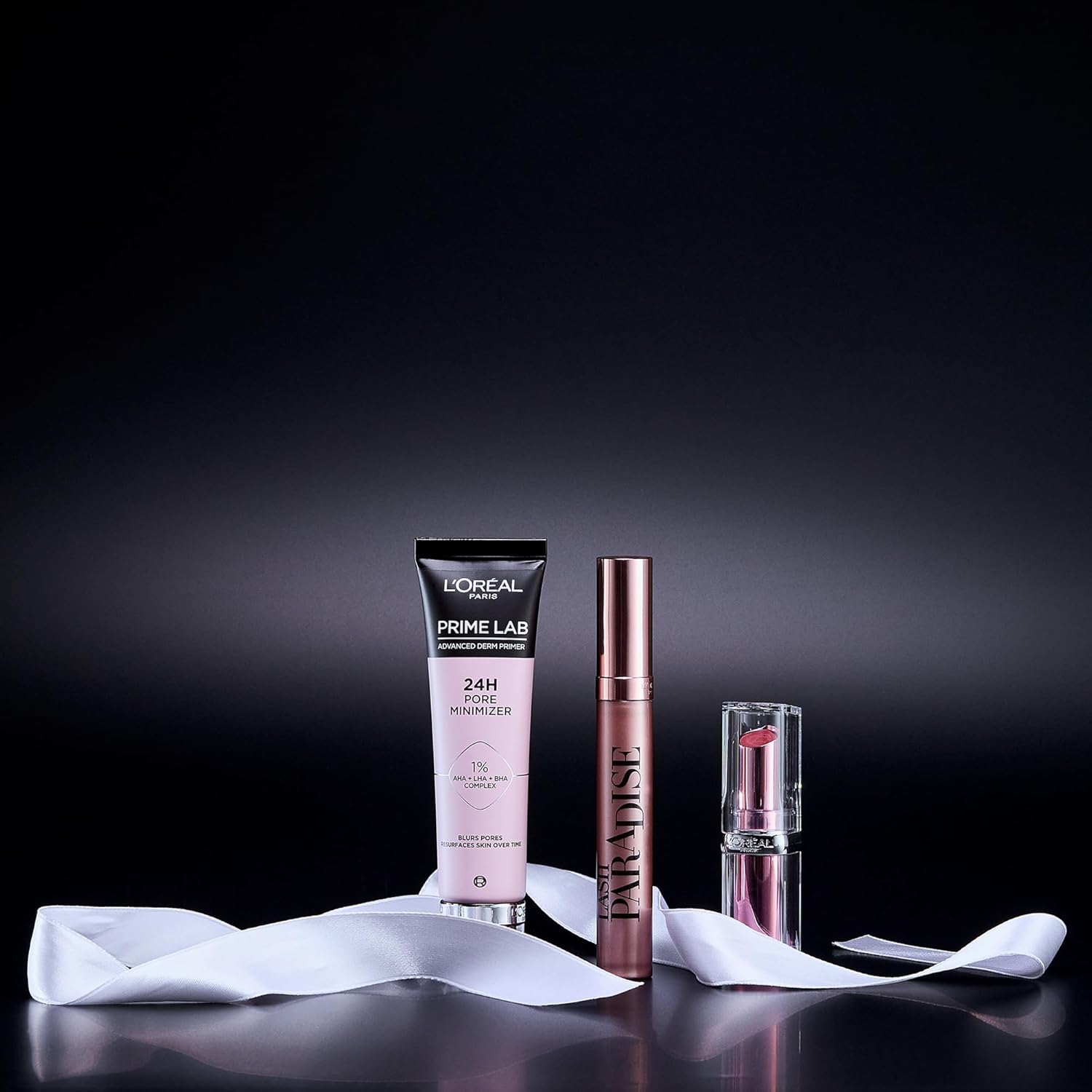 Extend your makeup wear with our pore-blurring primer, forumlated with 1% AHA + LHA + BHA complex to help resurface. Powered by derm actives, our 1st instant skin-transforming primer instantly blurs pores for 24H. Want lashes that’ll take you to paradise? L’Oréal Paris Paradise mascara enriched with lash-loving castor oil will give you intense volume and spectacular length with a feather-soft feel. Our Ultra-Soft brush carefully coats lashes with silky smooth castor oil – which keeps lashes feeling soft and flake-free. And you can control how bold you go. If you’re dressing to impress, simply add more coats for striking intensity. The first balm-in-lipstick, in shade 191 Nude Heaven, so natural-looking and healthy-looking for lips, they glow. Formulated with natural origin ingredients including pomegranate extract oil, this balm locks in moisture for up to 4 hours of hydration. It’s cushiony, buttery texture cares like a balm and is suitable for sensitive lips.