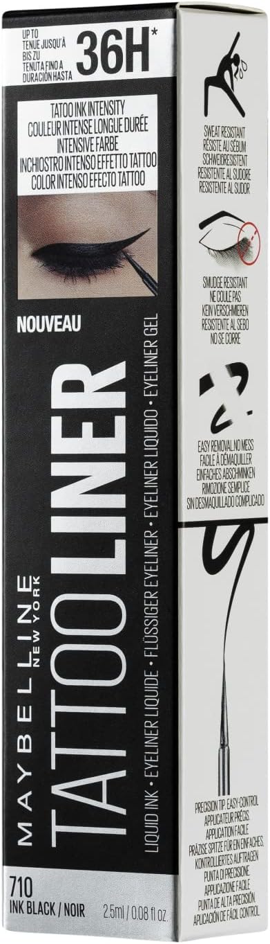 Maybelline tattoo liner liquid eyeliner by tattostudio – 720 |inked tattoostudio liquid ink eyeliner is Maybelline first semi-permanent liquid eyeliner. This high-impact eyeliner delivers precise definition and lasts up to 36 hours – A must-have to create the winged look or the perfect cat eye. Easily remove your semi-permanent eyeliner with no hassle, no mess, and no raccoon eyes. Create the most attention-grabbing eyeliner makeup look yet with tattoostudio liquid ink eyeliner. The Fade, smudge, and sweat-resistant liquid eyeliner formula glides on with one quick stroke. Features intense colour pigment and a precision tip for effortless application. Our semi-permanent eyeliner lasts up to 36 hours with zero mess removal.