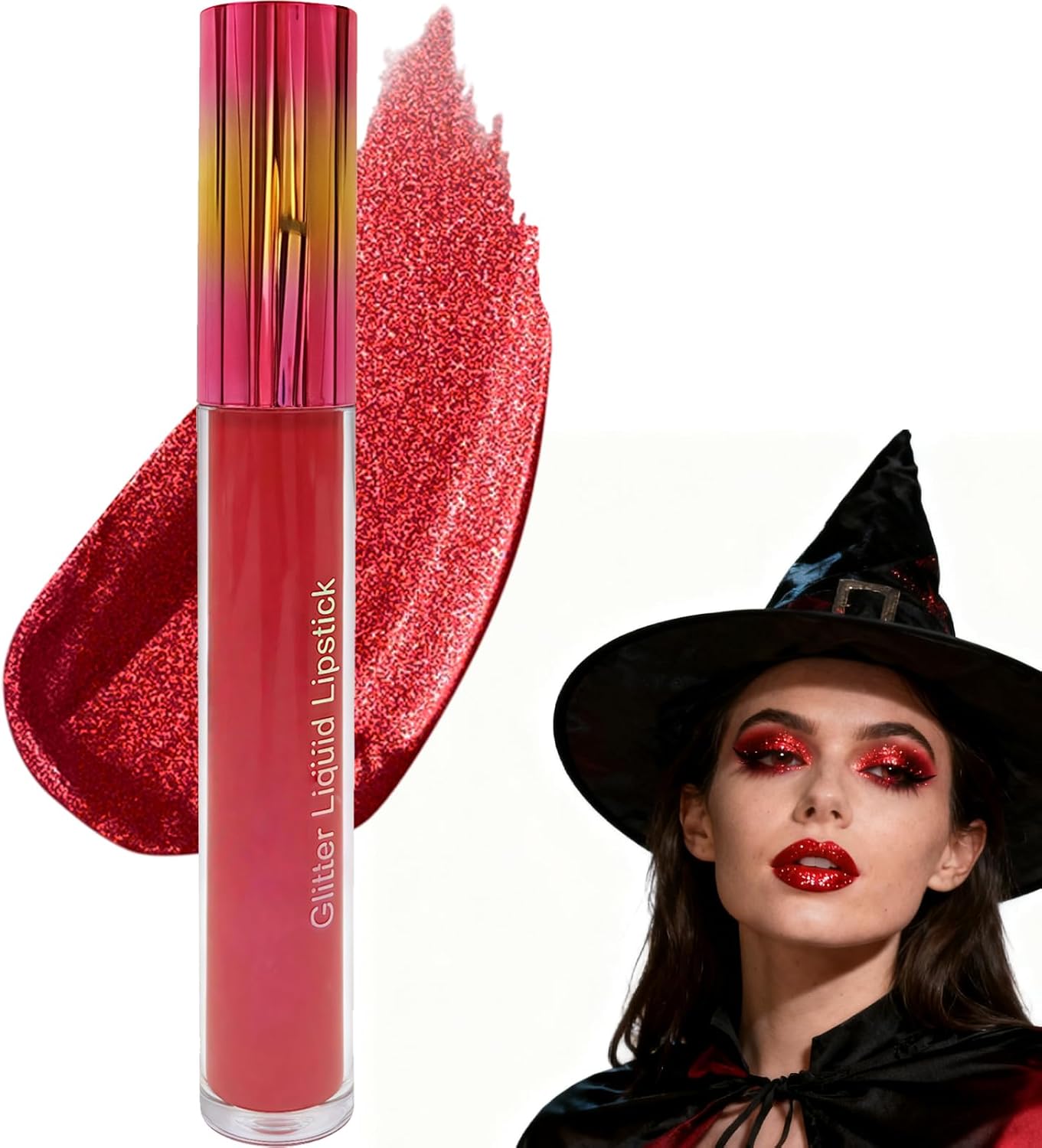 Red Lip Gloss Glitter Lipstick, Metallic Diamond Shimmer…