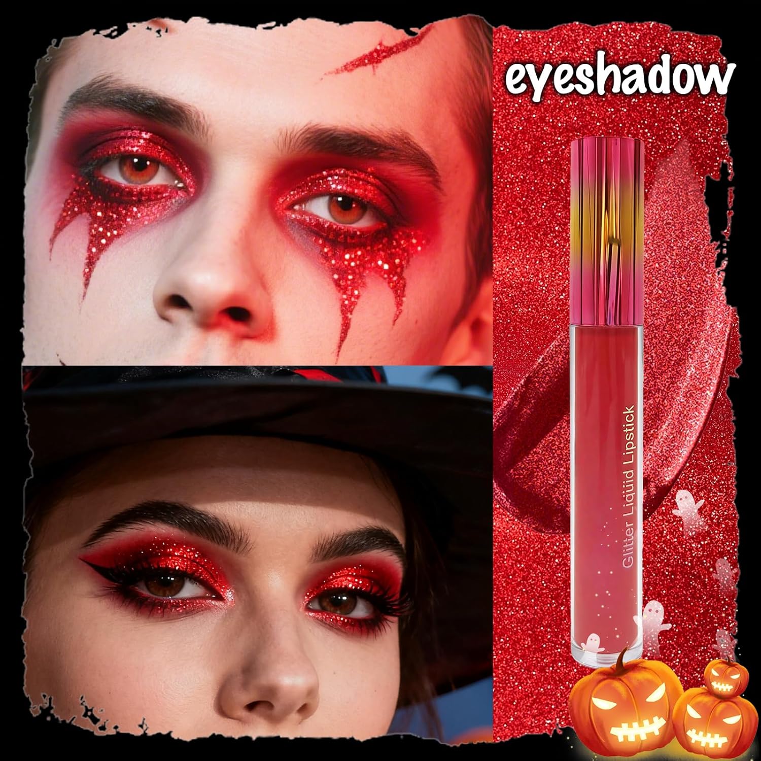 Before and after photo showing lash volume with Red Lip Gloss Glitter Lipstick, Metallic Diamond Shimmer...