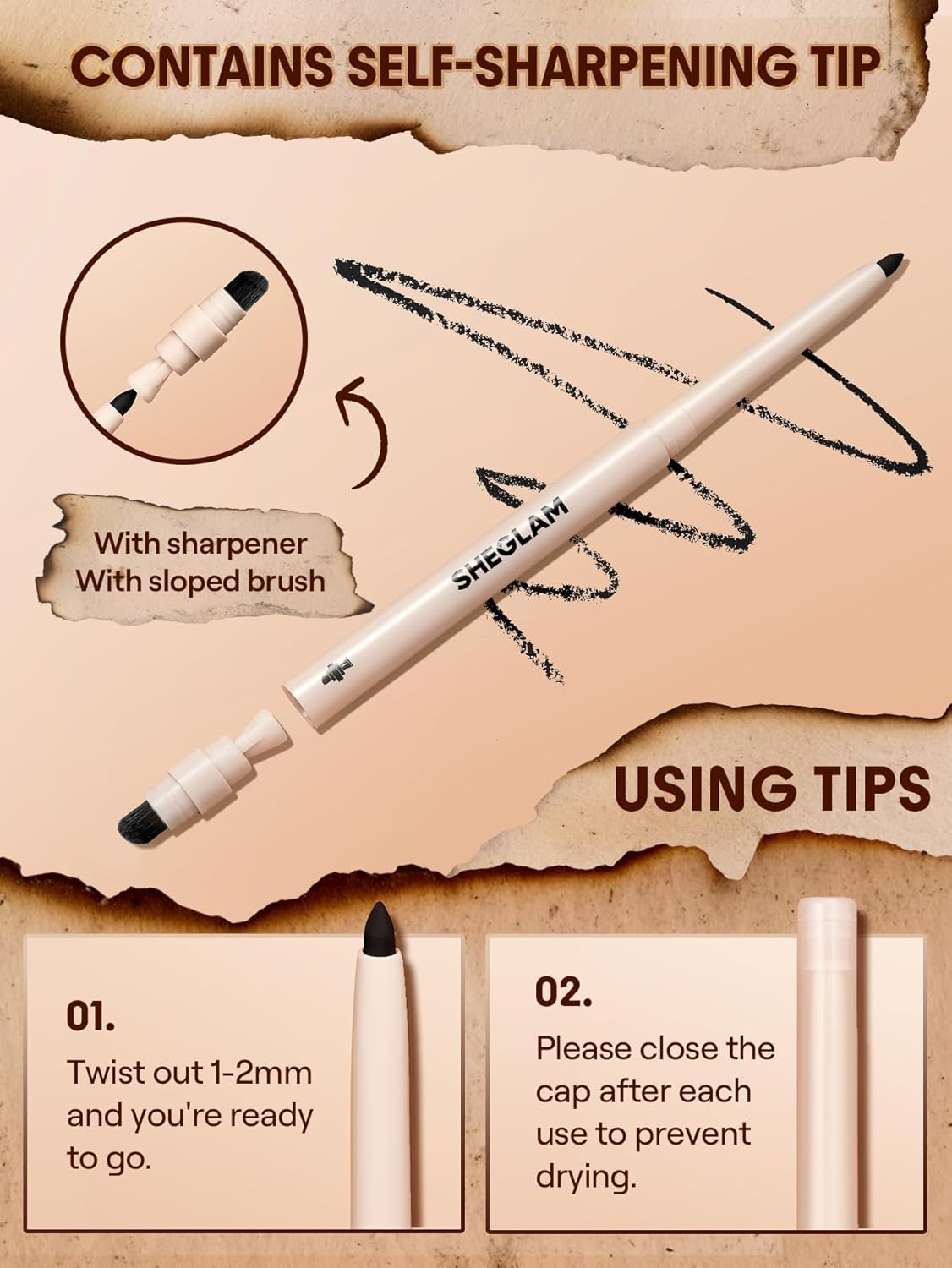 BUILT-IN SLOPED SMUDGE BRUSH: Blend and smoke out your liner for pro-level looks.